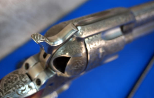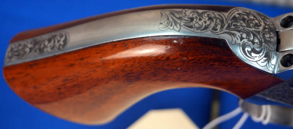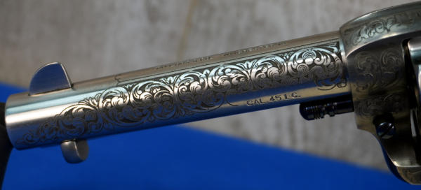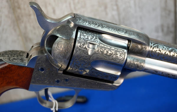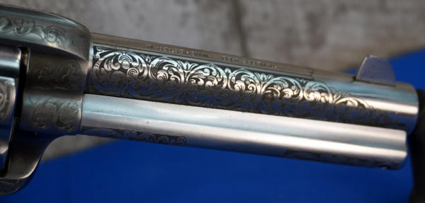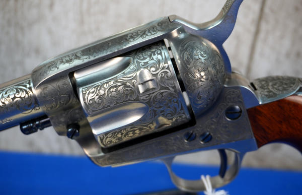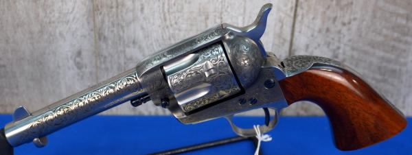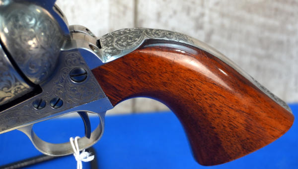 4.75" Stainless Barrel; highly factory engraved on entire gun; smooth wood grips; 6-shot fixed cylinder; has been fired but overall extremely clean like new condition; Italy; SN#J31563; A-315