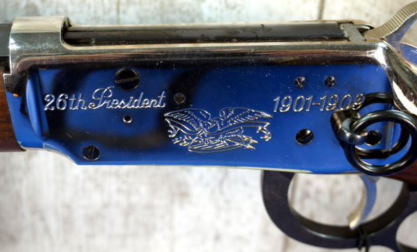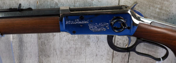 26" Oct. BBL; has original box but only a portion of the original graphic sleeve; gun looks mint & unfired; nickel finish receiver, forearm cap, hammer, butt plate; medallion in stock; USA; SN#TR38976; A-239