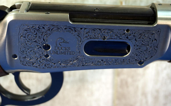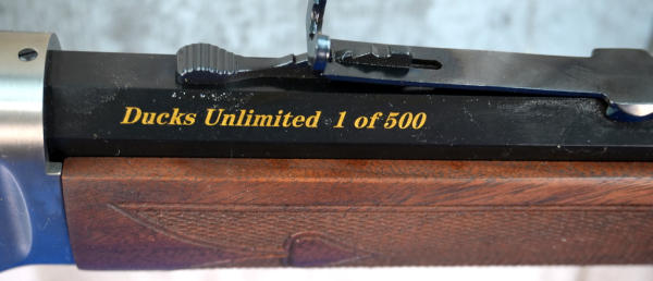 24" Oct. BBL; mint & unfired; highly engraved stainless receiver; original box & shipping box; metal crescent butt plate; on 1 of 500 mfg.; Japan; SN#2025DU0368; A-289
