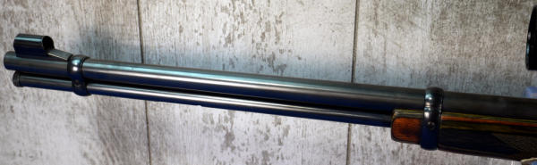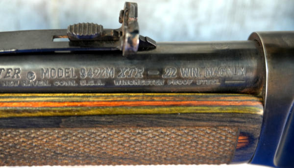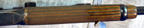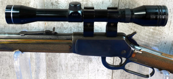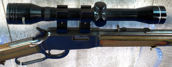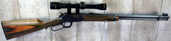 20" BBL; smooth action; green laminate wood grain stock w/nice checkering; Tasco 4x32 scope w/see-thru mounts; full length receiver tube; plastic butt plate; USA: SN#F581365; A-281
