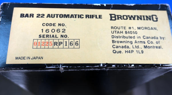 20" BBL; high gloss wood stock w/nice checkering; full length receiver tube; mint & unfired w/factory box; plastic butt plate; Japan; SN#01224RP166; A-280