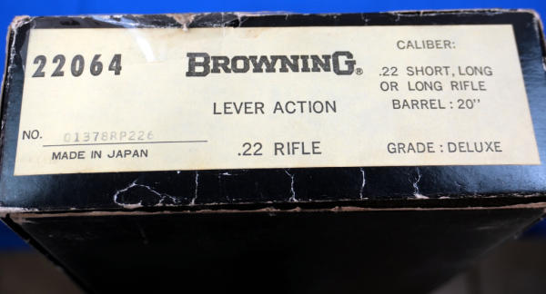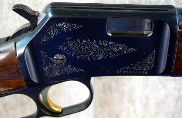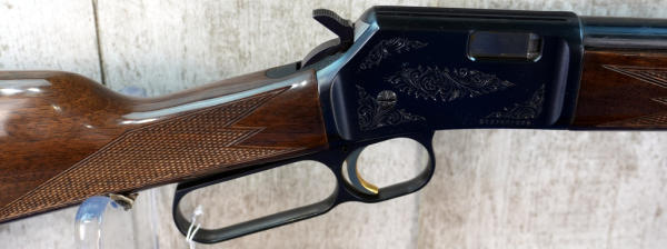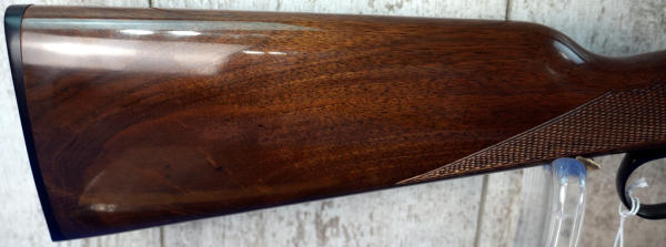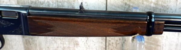 20" BBL; full length receiver tube; gold trigger; mint & unfired; plastic butt plate; factory scroll engraving on receiver; nice high gloss wood stock w/checkering; factory box; Japan; SN#01378RP226; A-280