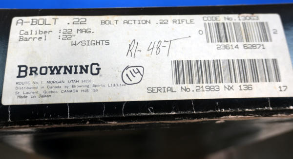 22" BBL; looks mint & unfired; plastic butt plate; factory box; Japan; SN#21983NX136; A-280