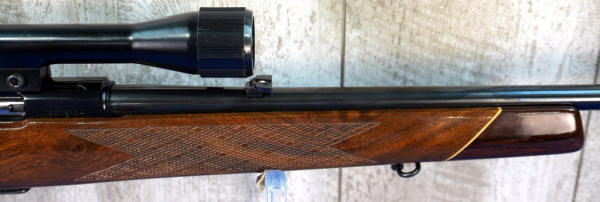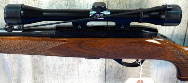 24" BBL; removable magazine; beautiful high gloss finish stock; rubber butt pad; Weatherby XXII 4x50 scope; bright bluing; sharp looking gun!; Japan; SN#JC13104; A-280