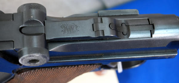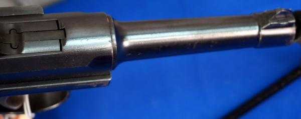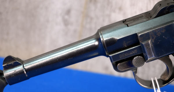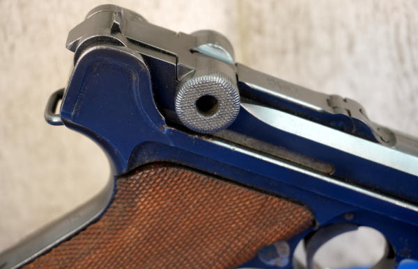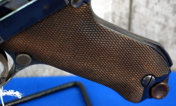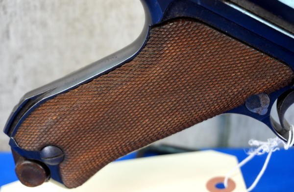 4" Tapered BBL; DWM on toggle; Crown over N proof mark; Marked Germany; straw bluing on trigger & safety; correct magazine w/wood base; nice wood checkered grips; comes with soft case; nice bluing and good looking pistol; not dated; Germany; SN#2984; A-292