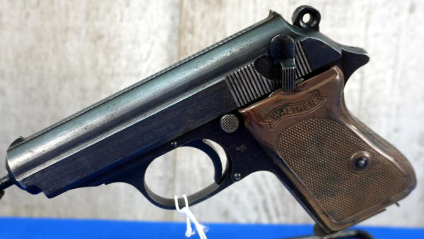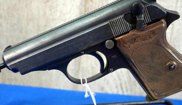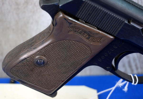 3.25" BBL; bakelite checkered grips; 2-magazines; period correct leather holster has some wear; bluing has some spotting; WaA marked; Germany; SN#387006K; A-285