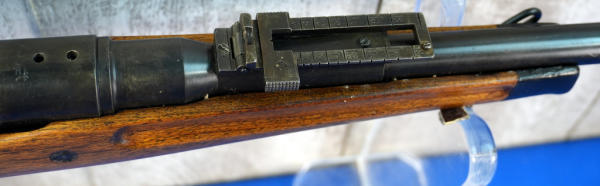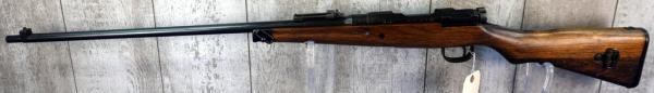 26" BBL; sporterized; smooth action; missing aircraft wings in original sight; excellent bore; bolt handle turned down for scope; drilled & tapped; ground mum; metal butt plate; Japan; SN#470; A-264