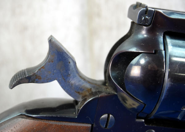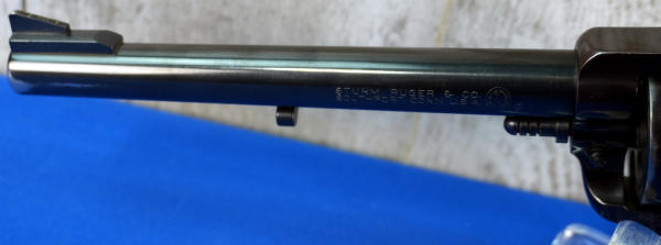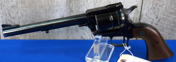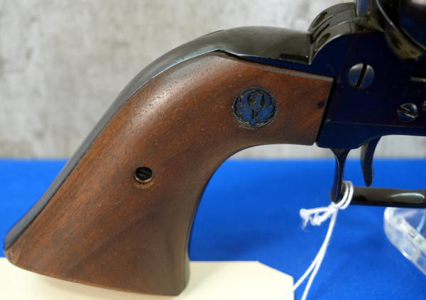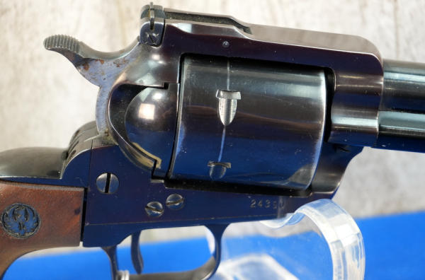 7.5" BBL; early 3-screw, no dash SN# and has flat hammer! Smooth wood grips; minor bluing loss on edges of cylinder; non-fluted 6-shot fixed cylinder; nice early Ruger revolver; USA; SN#24390; A-315