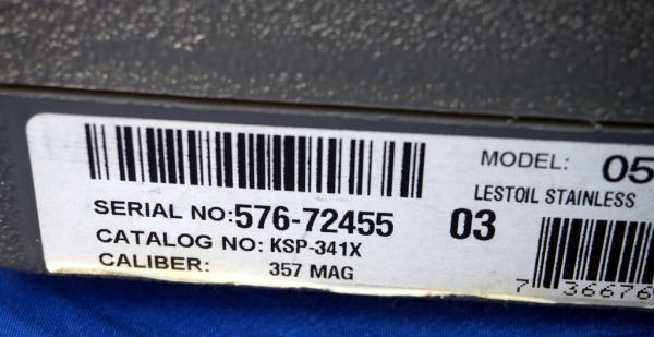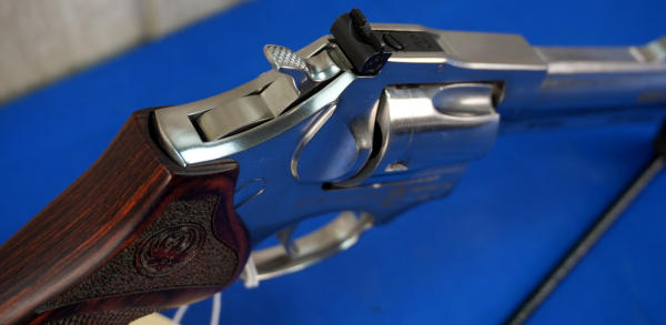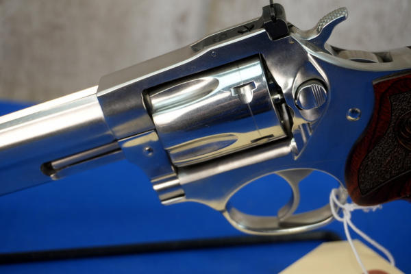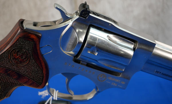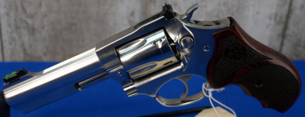 4.25" Stainless Barrel w/Hy-vis front sight; wood checkered grips; 5-shot swing out cylinder; very clean used condition; factory hard case; USA; SN#576-72455; A-288