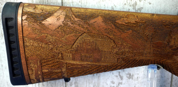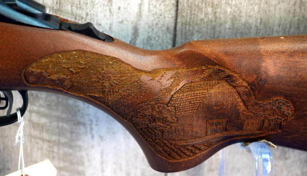 22" BBL; smooth action; mint & unfired; no box; highly engraved wood stock w/farmstead scene; removable magazine; USA; SN#AFR-01375; A-287