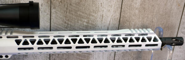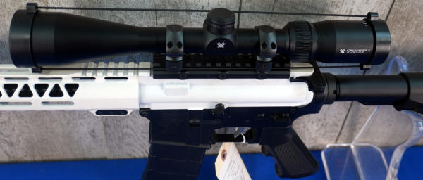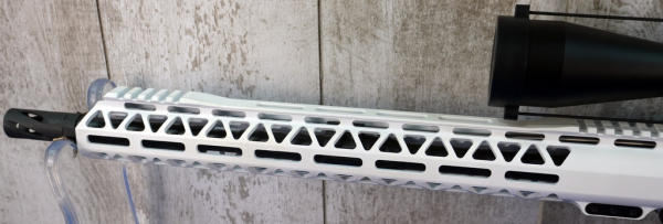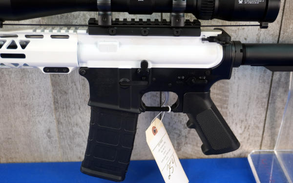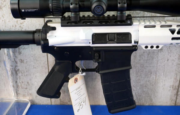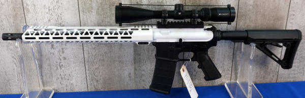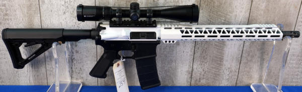 16" BBL w/2" flash hider; solid white upper; adjustable stock; Vortex Crossfire 4-12x44mm scope; like new condition; USA; SN#25018900; A-312