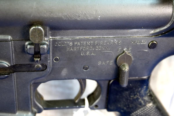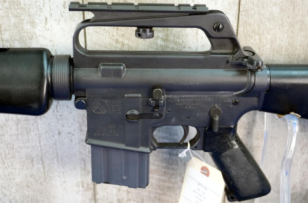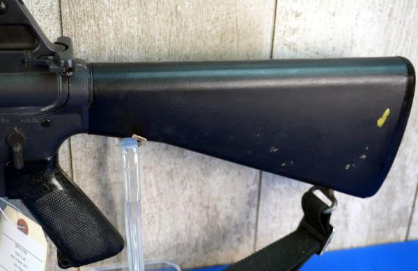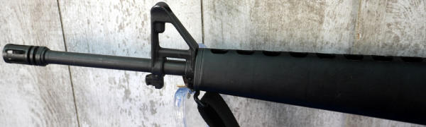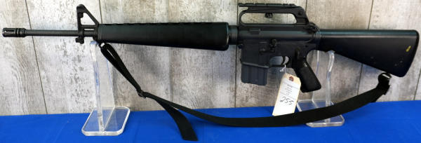 20" BBL w/1.5" flash hider; triangular handguard; fixed synthetic stock; carry hand w/picatinny rail; woven sling; used but very clean; USA; SN#SP51109; A-255