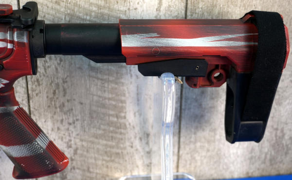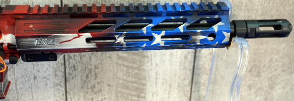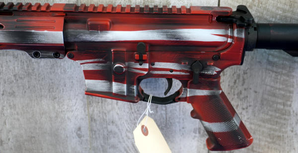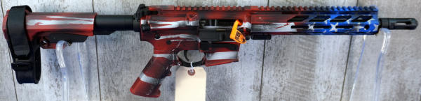 10" BBL w/2" flash hider; transferred as a pistol; red/white/blue Cerakote graphics; adjustable no magazine; full length picatinny rail; appear mint & unfired; no box; Usa; SN#FF9F00242; A-255