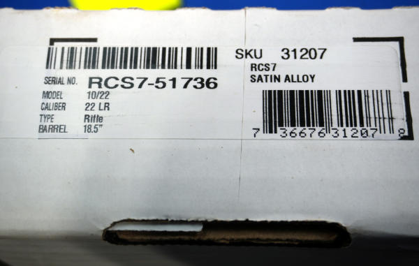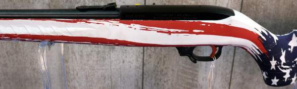 18.5" BBL w/Hy-vis front sight and threaded muzzle; mint & unfired w/factory box; synthetic stock w/USA flag graphics; removable magazine; includes the special edition sign & button; USA; SN#RCS7-51736; A-295