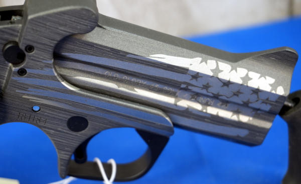 3.5" Stainless BBLs; has American flag graphics & engraved wood grips; mint & unfired; comes w/hard leather holster & hard case; 3" & CC; USA; SN#181184; A-255