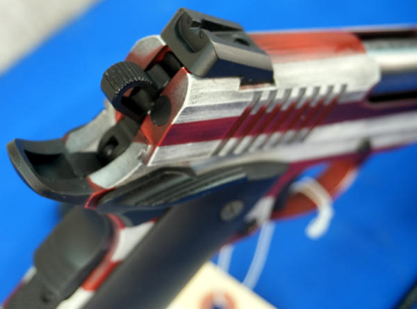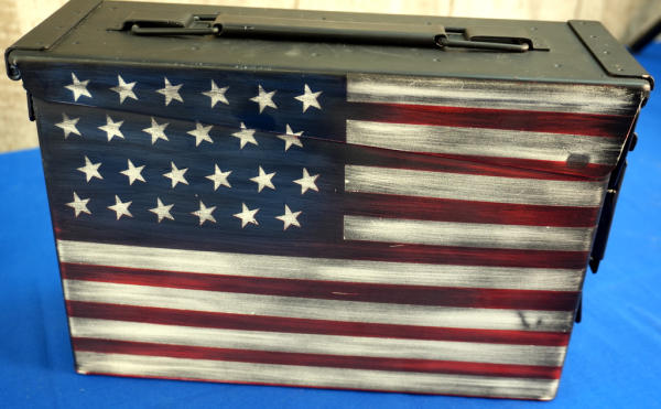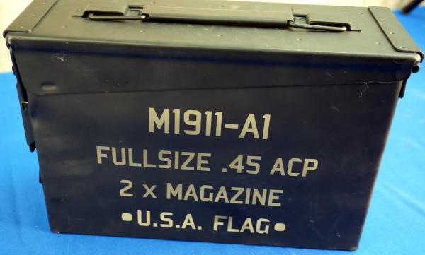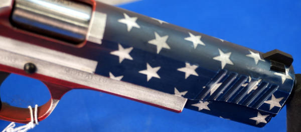 5" BBL; US Flag Cerakote graphics; mint & unfired w/steel ammo can case; has smooth black grips and includes set of wood checkered grips; 2-magazines; Philippines; SN#CIT066696; A-255
