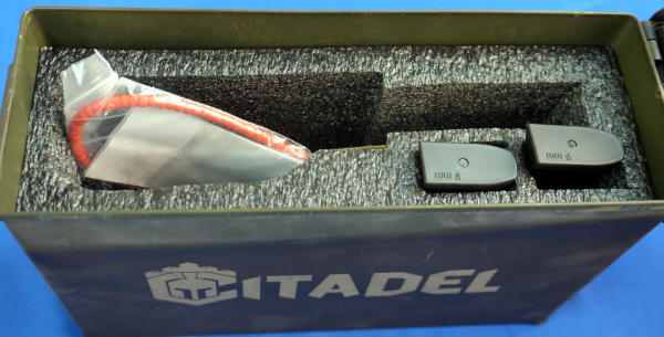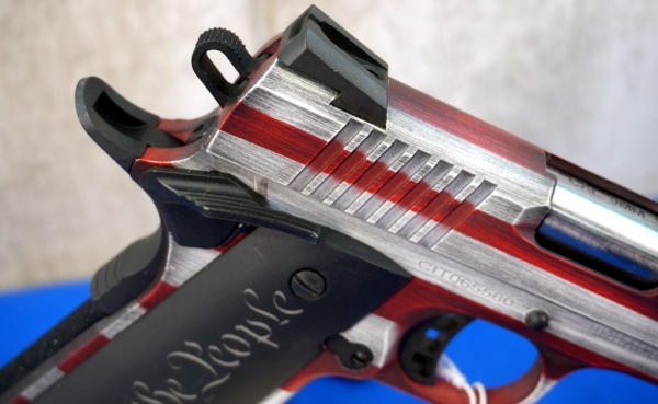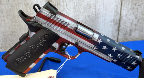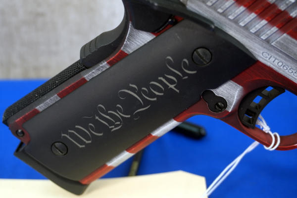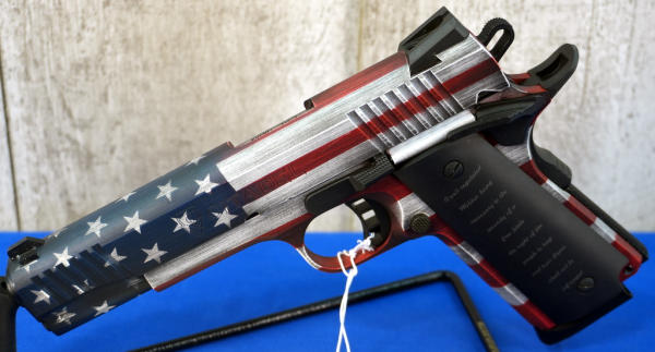 5" BBL; US Flag Cerakote Graphics; mint & unfired w/steel ammo can case; has smooth black grips w/"We The People" text; includes extra wood checkered grips and 3-magazines; Philippines; SN#CIT065580; A-255