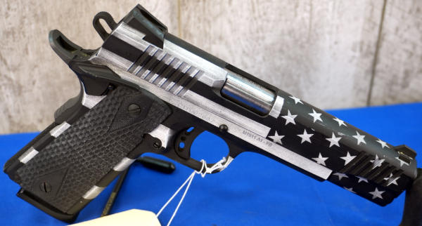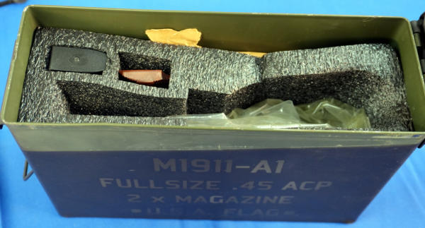 5" BBL; US Flag Black & White Cerakote graphics; mint & unfired; steel ammo can case; has black composite textured grips & extra set of wood checkered grips; two magazines; Philippines; SN#CIT062637; A-255