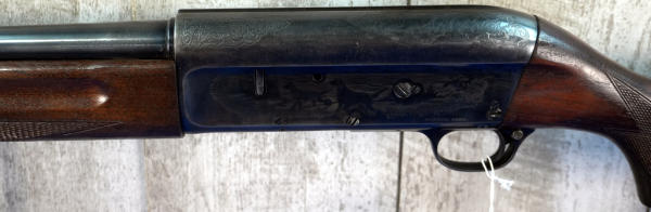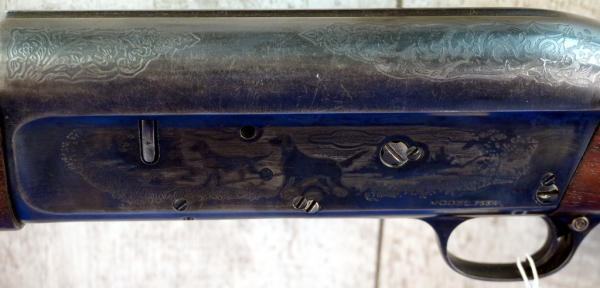 28" Rnd. BBL; very nice wood stock; plastic butt plate; receiver has a dark patina and factory etched duck & dog scenes; 2.75"; FC; USA; SN#575298; A-278