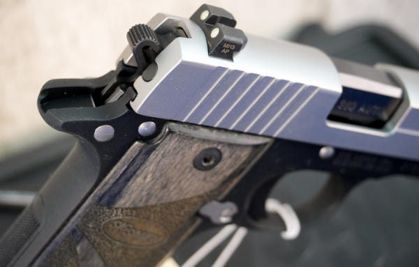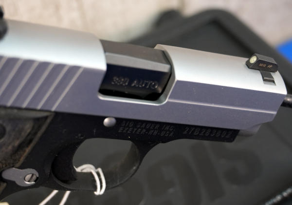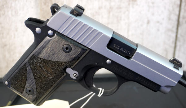 2.75" BBL; Stainless Slide w/black steel frame; laminate wood grain grips; holster & factory hard case; night sights; USA; SN#27B283802; A-302