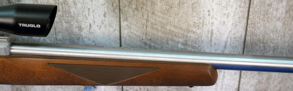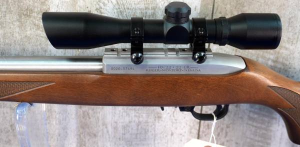 20" Stainless Barrel w/Threaded Muzzle; wood stock; Truglo scope; removable magazine; like new; USA: Sn#0020-57494; A-287