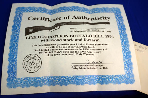 mfg. by Daisy; limited edition 1 of 2500; comes with COA; mint & unfired w/original box