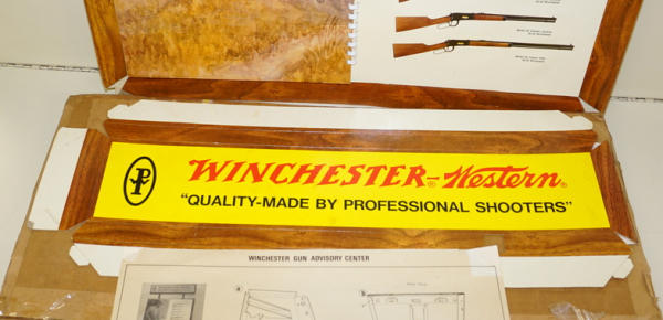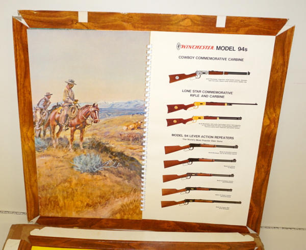 Bottom left corner is starting to peal, Overall good condition 25''x27'', with original box, great color, several pages including full line of Model 70's, 94's, and more, neat piece