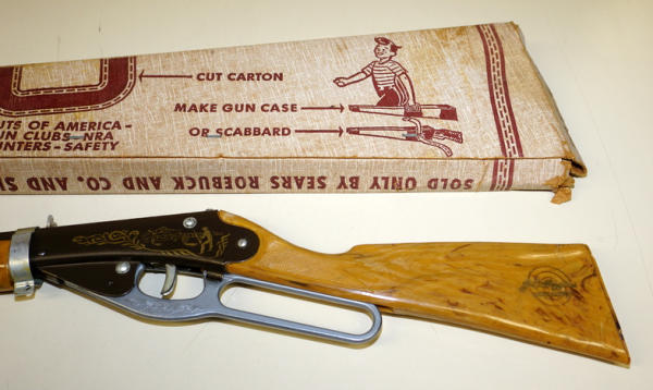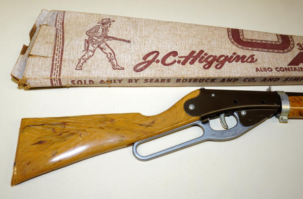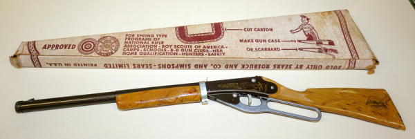 really clean and nice 1950's era BB gun, has compression and fires, box has a couple pieces missing out of the top and some general wear, but overall a good box too, neat find