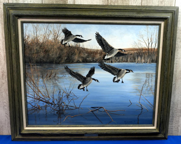 this is a painted canvas print; no glass face; nicely framed; dated 1978; very nice; 35"x29"