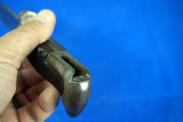 has wear and blade has been sharpened; blade is 6" and 10.75" long overall; has bayonet slot