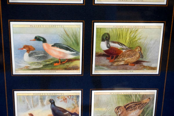 all nicely framed and matted; prints of original cards; each a little smaller than a baseball card; glass face; 17"x13"