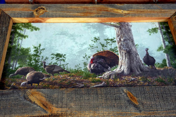 signs are masonite; barn wood style frames; Elk has coat hooks; Turkey one is 25"x16"; sell 2x the money