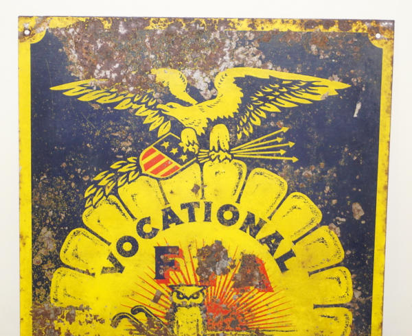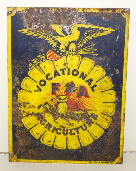 12"x9", heavy paint loss and wear, but an early FFA sign, I'd guess 1950's or older