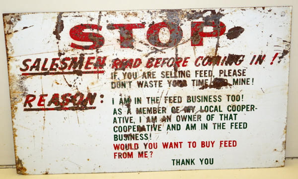 12"x20", heavy paint loss and wear, but a unique sign if you read it, neat piece for the Livestock collection