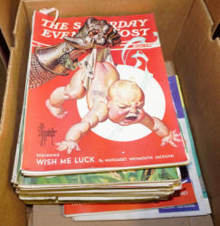 #880 - Box of Misc Paper Items--includes 1937 Whitewater Wisconsin Homecoming book, Magazines & misc.