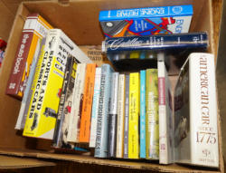 #881 - Banana box full of vintage Car related magazines, books, & misc. items