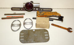 #849 - Lot of Misc Antique Car & Truck Parts--International Nameplate, Ford Cast Foot Pump base, Moto-Meter parts & more