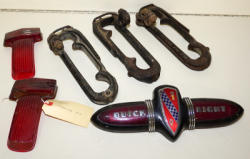 #852 - Lot of Car Parts--Buick Eight Emblem and Cast Iron Convertible Top parts