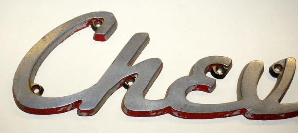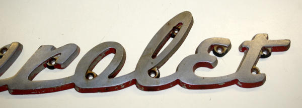 23" long, 4.75" tall, cast aluminum, nice original, really large & impressive name plate