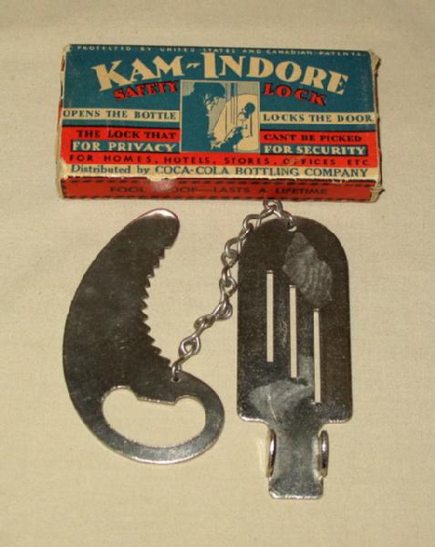 Lock is mint and stamped "Drink Coca-Cola in bottles", box is also marked on both sides, neat graphics on this old piece, measures 4" long