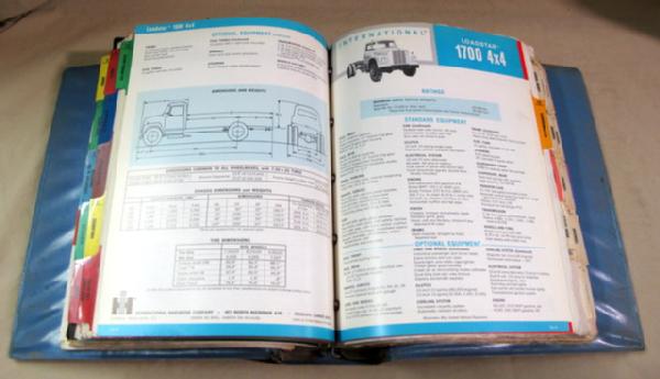 about 4" thick of material! Cover shows a lot of wear, but contents are great, Scouts, Pickups, Trucks, School Buses, metro's & more, another great truck book!