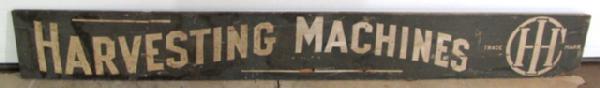 8' long, missing a piece out of the lower right corner and has some wear, but not too bad for a very early wood IH sign