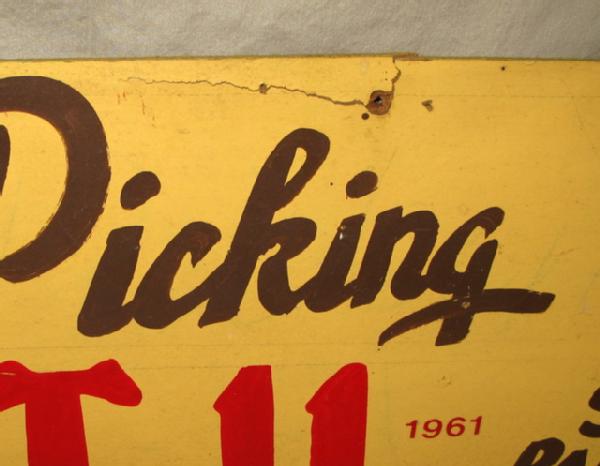 Neat sign, originally from the Preheim Museum Collection, hand painted on Masonite board, 5'x10", rates 7.5 condition