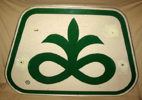 has some touched-up paint around the mounting holes, heavy wood sign, about 3/4" thick, 33"x22"