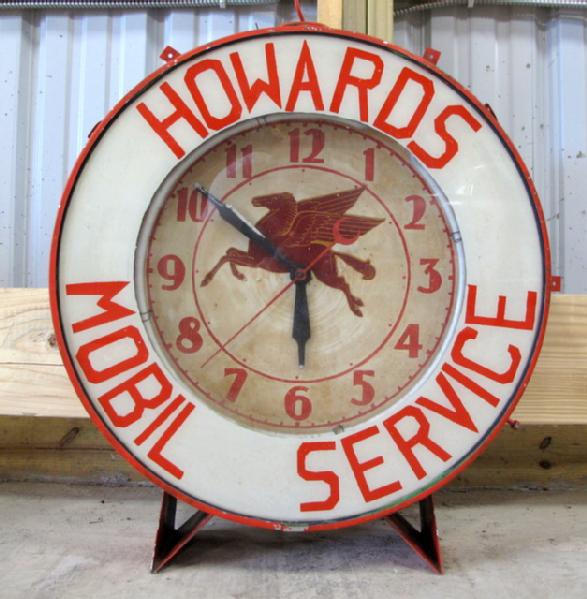 Very rare clock, has original Pegasus graphics, clock runs, but neon did not light, can has been painted along time ago, overall is about 24" across, could use a cleaning, but a rare clock
