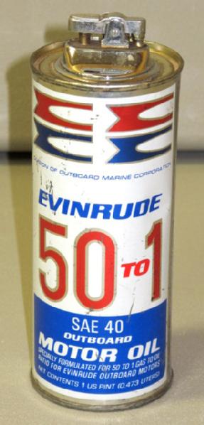 Oil can body with lighter on the top, promotional made by Evinrude, rates 7 condition