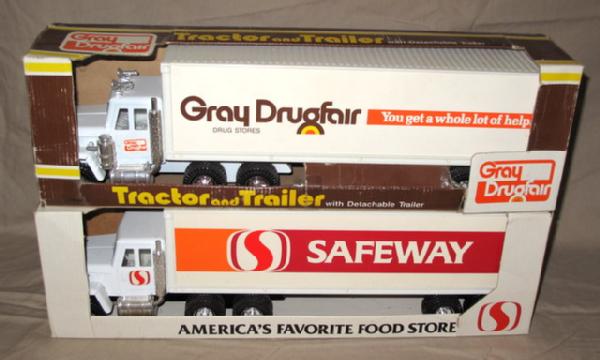 both plastic trailers with metal cabs, both NIB, boxes have some wear, 2x the money