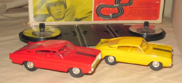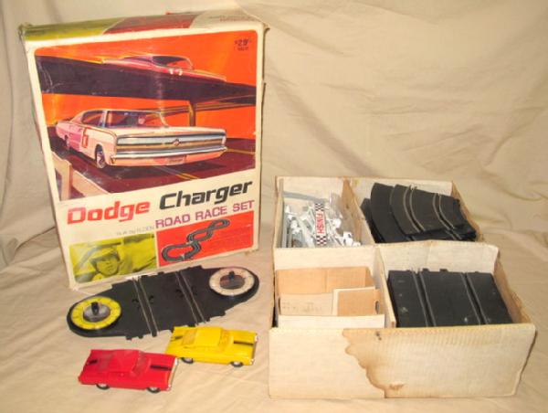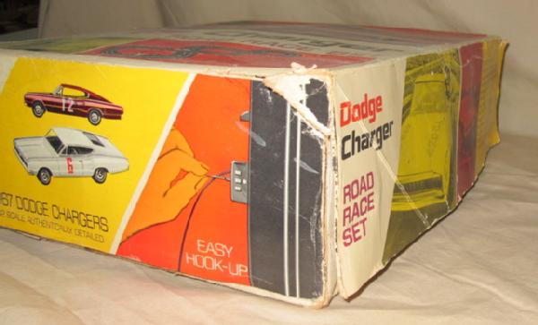 Set looks complete with both cars, did not test, box has a lot of wear and damage, still a great slot car set