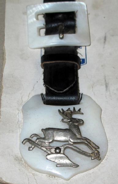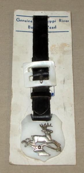 unusual variation, fob is near mint with original MOP buckle, card has a little soiling, but not bad