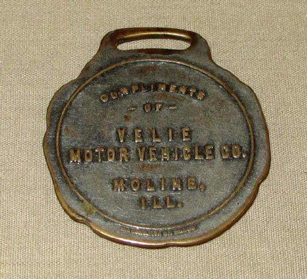 reverse side reads "Compliments of Velie Motor Vehicle Co., Moline, IL" with maker's mark, has some general wear
